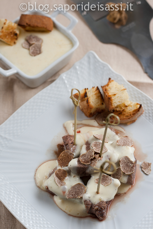 E dopo un primo piatto, questa volta il tartufo bianco pregiato l’ho utilizzato per arricchire una delle mie ricette preferite, ossia la fonduta piemontese su bocconcini di filetto di manzo.