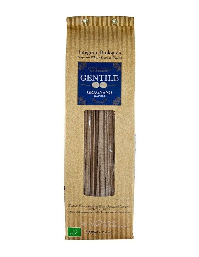Una nuova linea appena creata dal pastificio Gentile di Gragnano, quella delle paste realizzate con semola integrale di grano duro biologico. Tra i formati integrali realizzati dal pastificio Gentile, vi sono anche le linguine che conservano le caratteristiche tipiche della pasta di Gragnano a cui uniscono le qualità delle semole integrali.